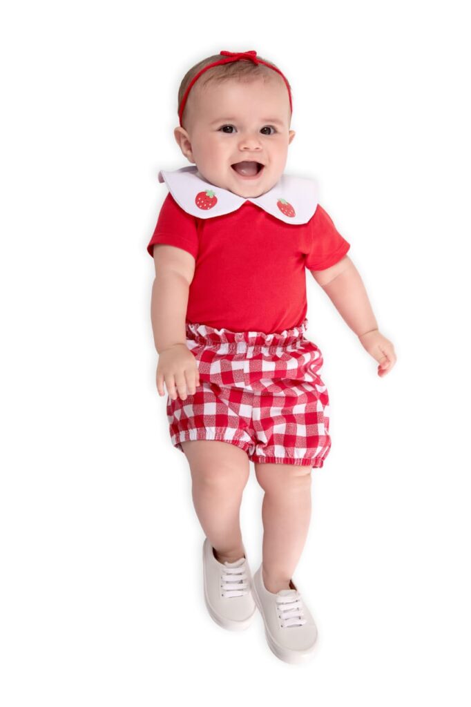Conjunto Blusa Cotton Strawberry c/ Shorts Saia Cotton