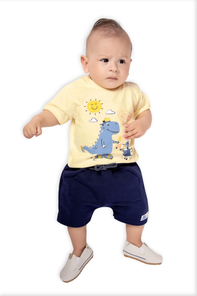 Conjunto Camiseta Meia Malha Dino c/ Bermuda Moletinho