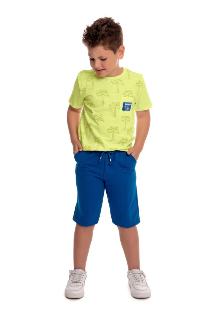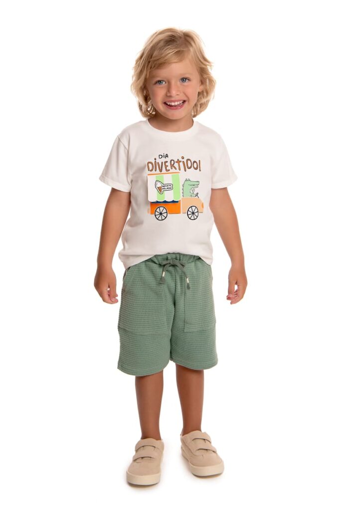 Conjunto Camiseta Meia Malha Divertido c/ Bermuda Malha