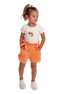 Conjunto Blusa Cotton Laranja c/ Shorts Malha quantidade