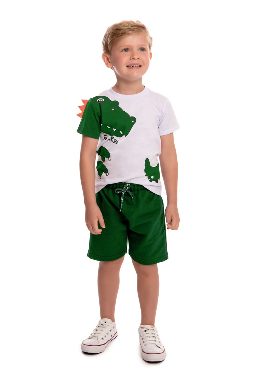 / Conjunto Camiseta Meia Malha Dino c/ Bermuda Moletinho