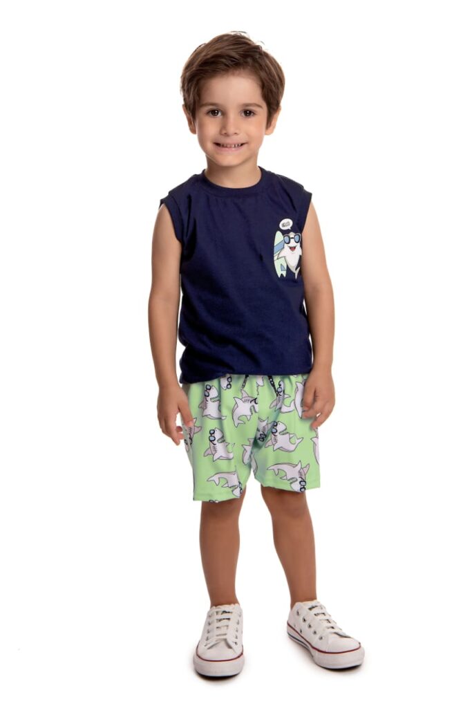 Conjunto Regata Meia Malha Tubarão c/ Bermuda Microfibra